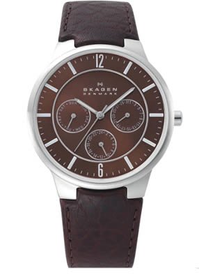 • Brown dial with silver hour, minute and second hands; rhinestone time markers