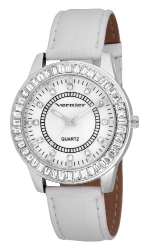 #1 Buy Now Vernier Women's VNR11011 Round Baguette Bezel Strap Fashion Watch